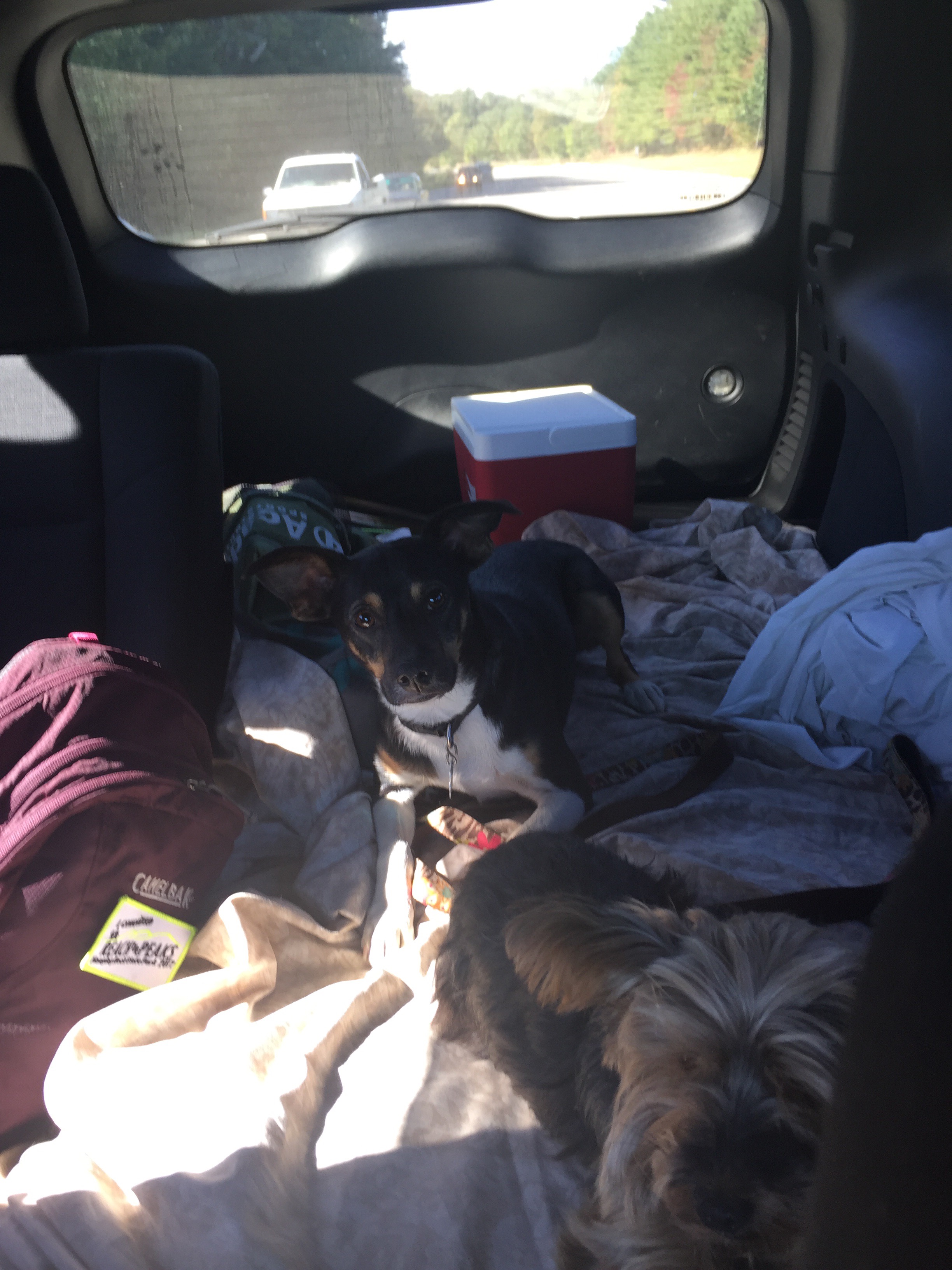 I’ve never hiked with two dogs before and Cooper isn’t much for riding in cars. We set off for the 2.5 hr ride to Roan Mountain. First stop breakfast in Kings mountain, just Bojangles.