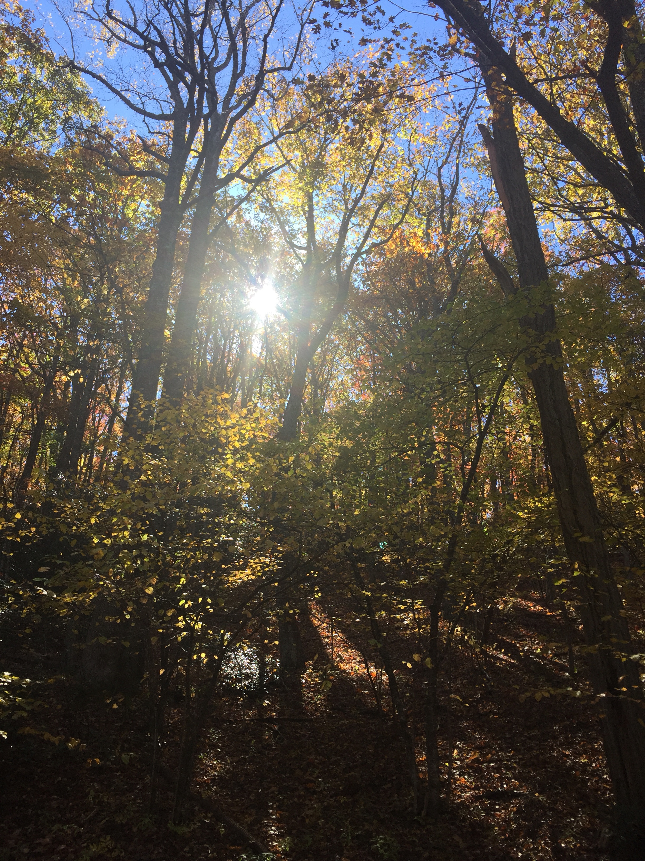 We unload the dogs. And cross the street and head up the trail. Mike can’t remember how far it is so we are hiking blind.