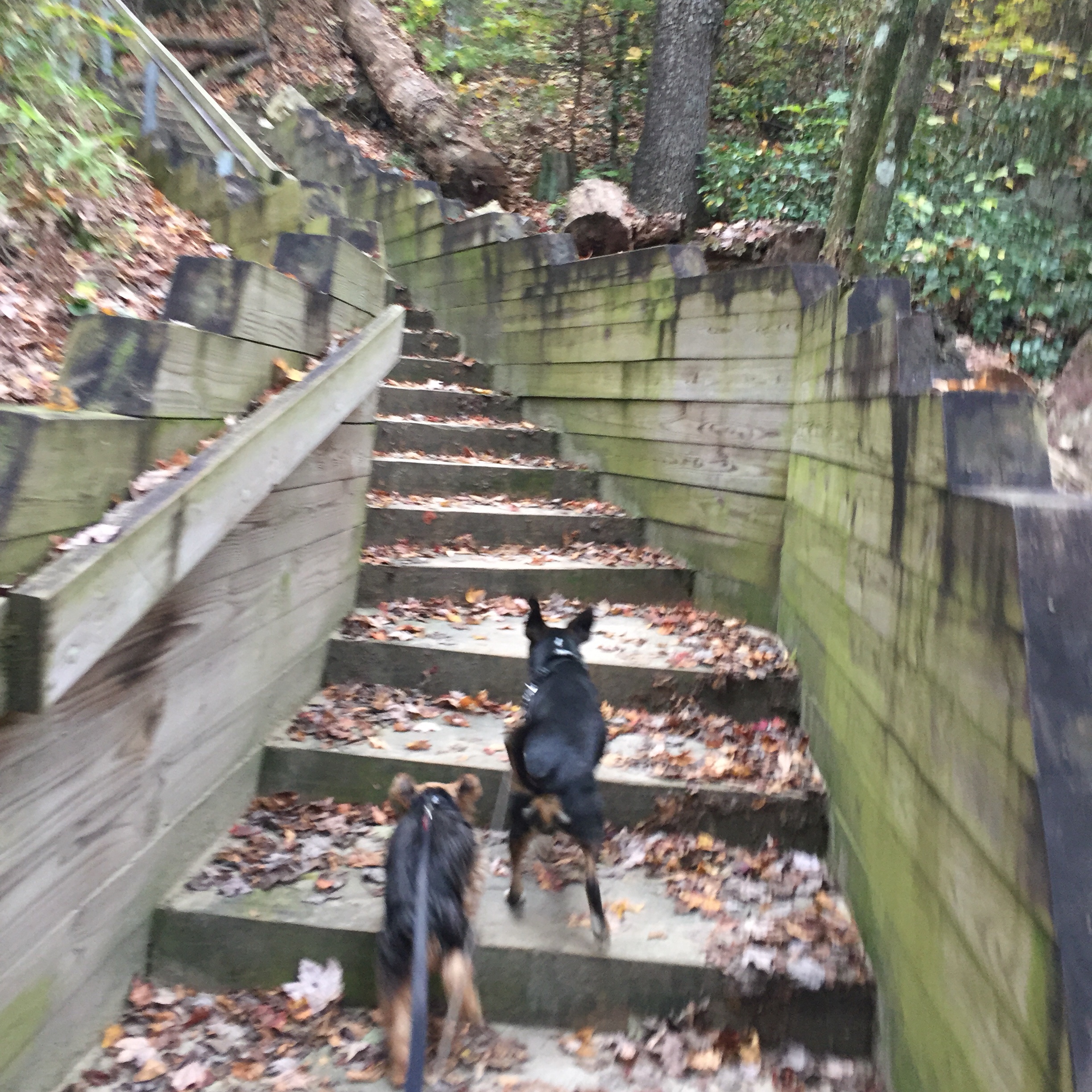 He is doing pretty good but the uphill really gets him. He insists cooper stays on his leash cause he just knows the dog is going over a cliff if we let him run. It’s exactly 1.9 miles to the cliffs.