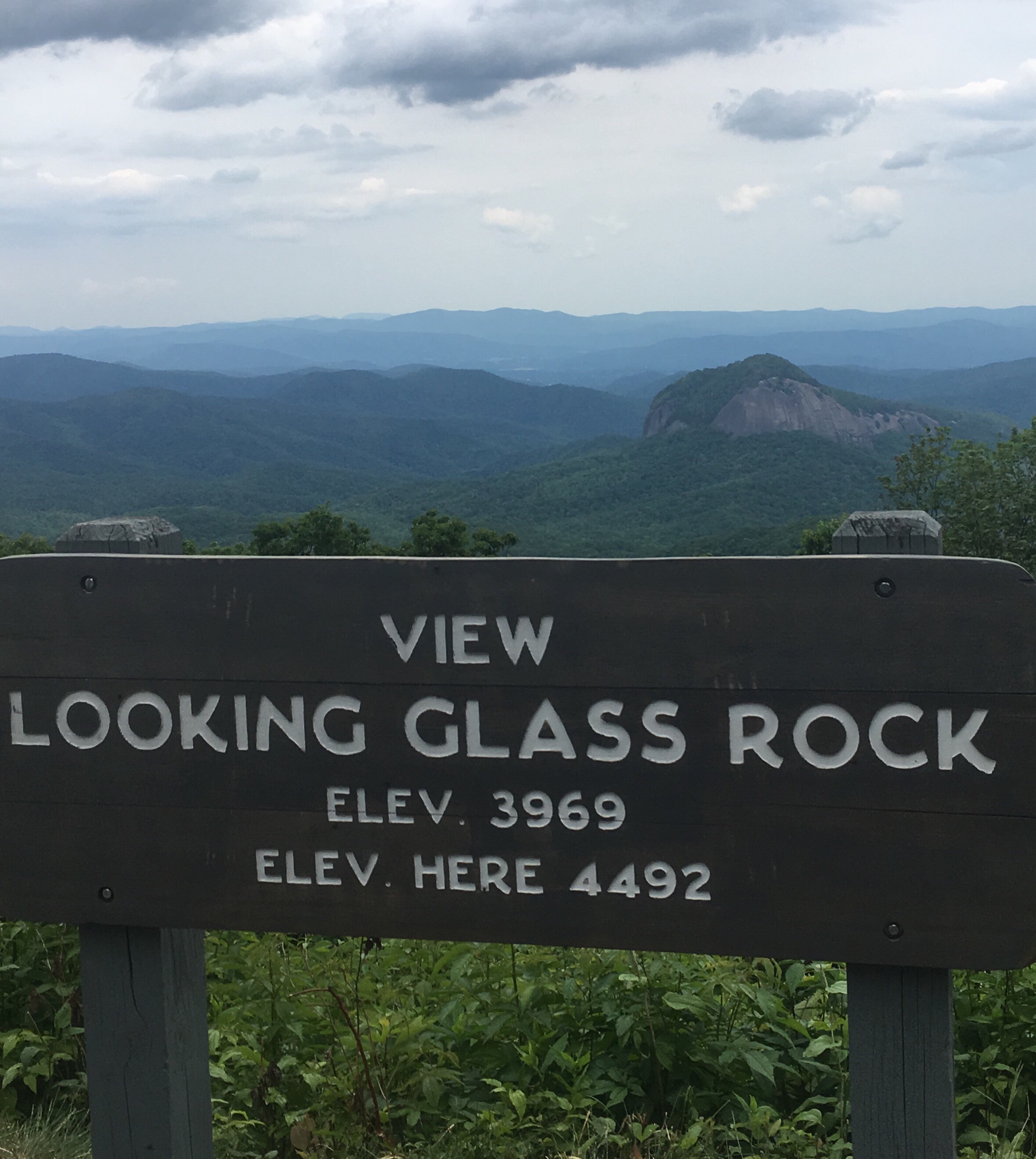 And by the way when you are on the Blue Ridge Parkway there is an overlook that is for Looking Glass Rock. It looks like this.