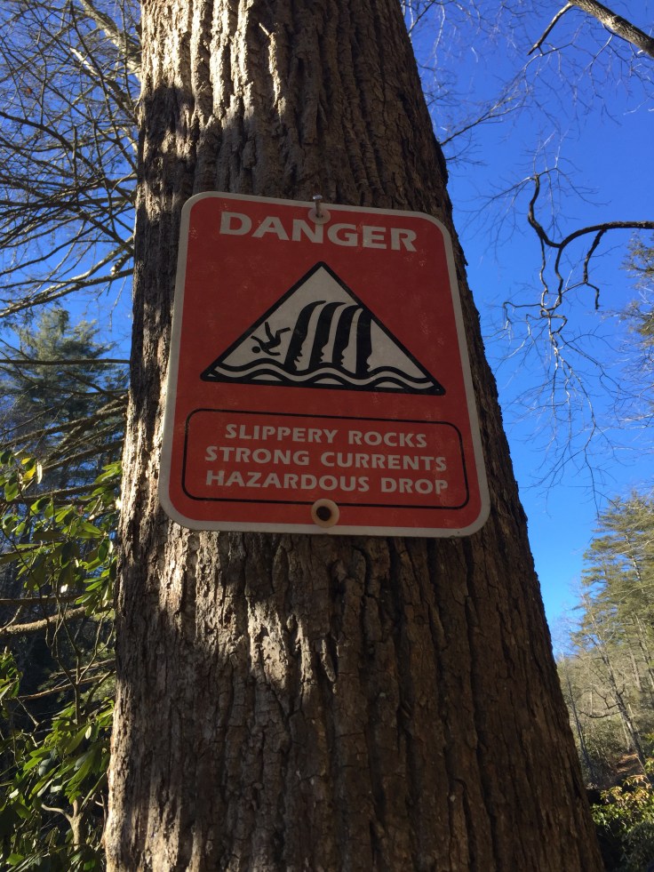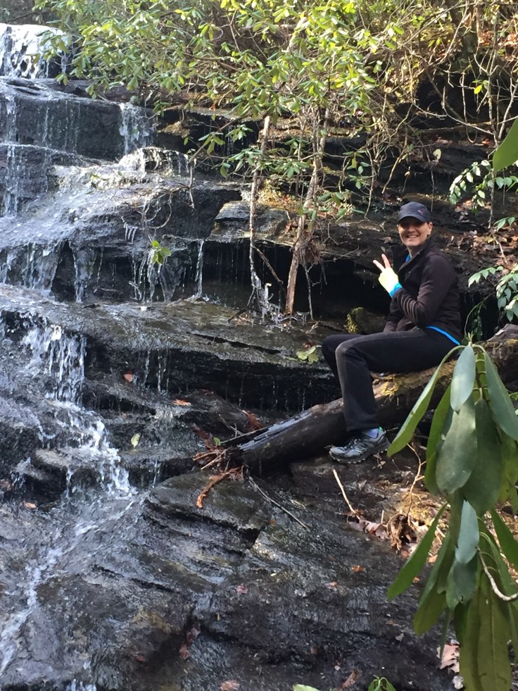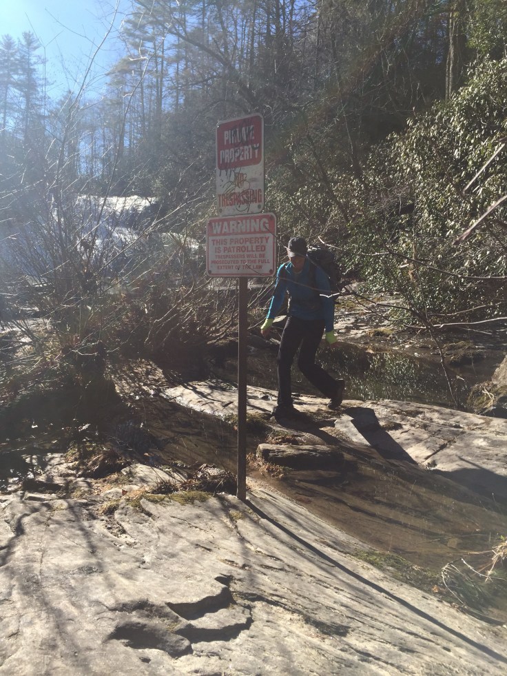 She tried to find Rhapsodie falls a couple weeks ago and didn’t so we are going to try again. We started out at 7:15 am (cause i was running late). Its 3 hours away to an area near Lake Toxaway, NC. We follow the GPS that took us up to a point on US 280. It said you are here. We clearly were no where? Why does GPS do that? We re-read that article and he said to go to past a trout farm and turn down an unnamed road that leads down to a camp. Seriously? These are the directions? We never find a trout farm but do find a road named Winding Gap Road with a TC sign on it. We go past the camp and find a tiny parking area at the trail head.
