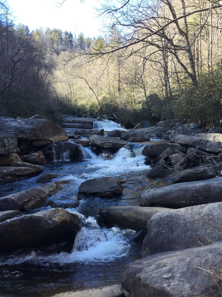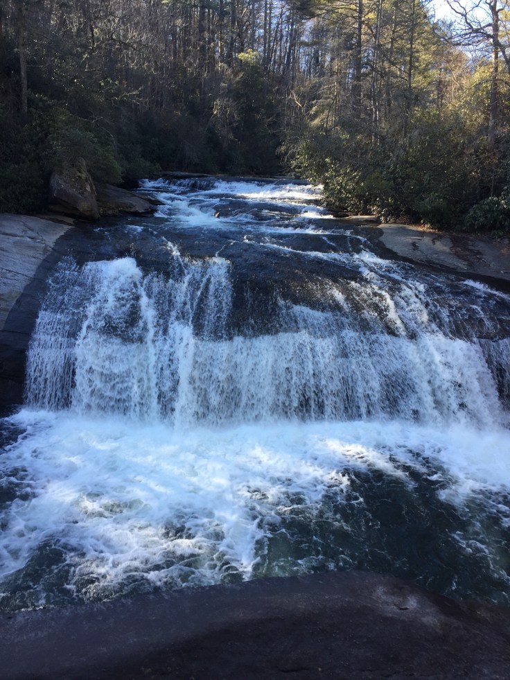 Now the trails are no longer marked and not so well maintained. Its ok because its a straight shot to the first falls. Rainbow falls is huge and amazing. It’s the Horsepasture River that goes over these falls. It’s a national scenic and wild river that ends in Lake Jocassee.