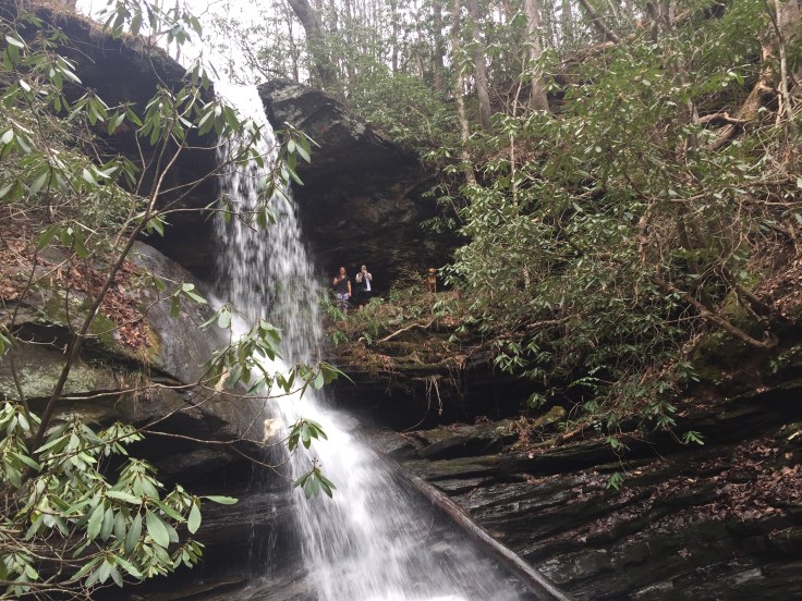 I tell the girls to wait there while I go down and get some pictures from the bottom. It’s kinda overgrown down there so I have to scramble over rhododendron trees.