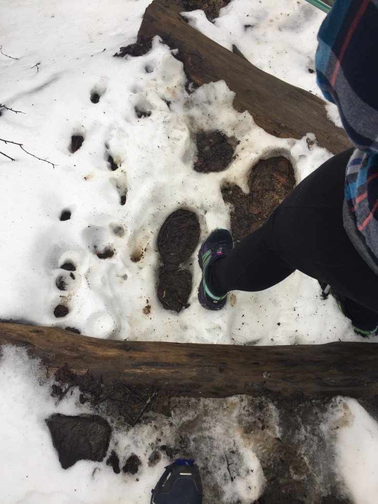 We continued up the trail. I’m already thinking there must be a lot more pony’s up here cause there are droppings all along the trail. Hiking in the snow and dodging horse poop! Weird thing is there was lots more poop where there wasn’t any snow.