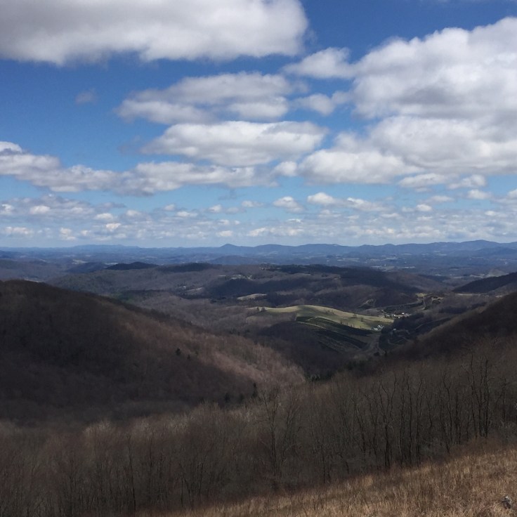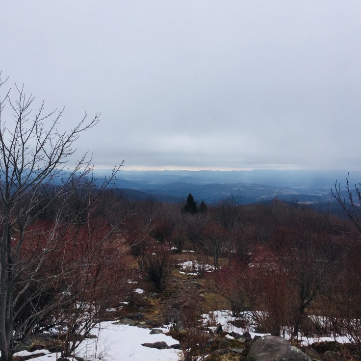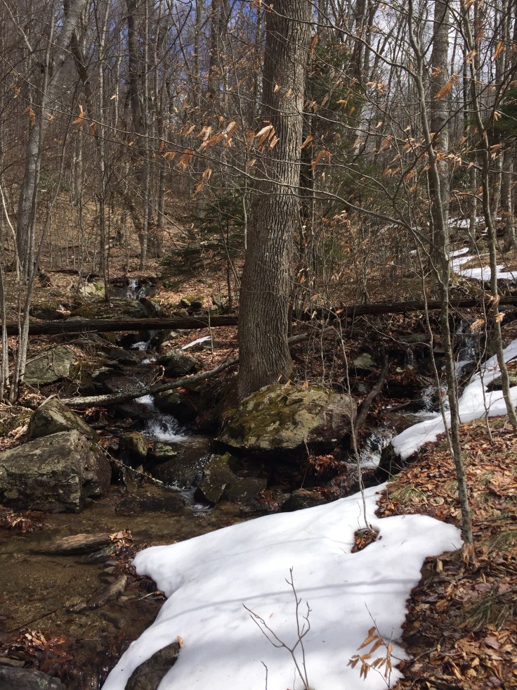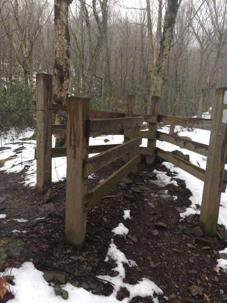 We start down the trail and notice that there is a lot of snow on the ground. That was one thing I didn’t think of. The weather forecast said it rained yesterday and today was going to be in the upper 50’s so it didn’t occur to me that this was a 5000 ft elevation and we were in Virginia and it was March. It was cold at first but then it wasn’t to bad.