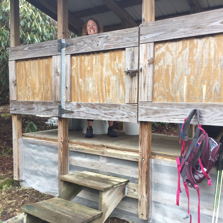 We arrived at the Privy first. It’s a compost privy which means there is a can full of duff. After each use you are supposed to put a handful of duff in the bowl so that the waste gets composted. I don’t know if then someone comes and gets the compost out or not. 🤔