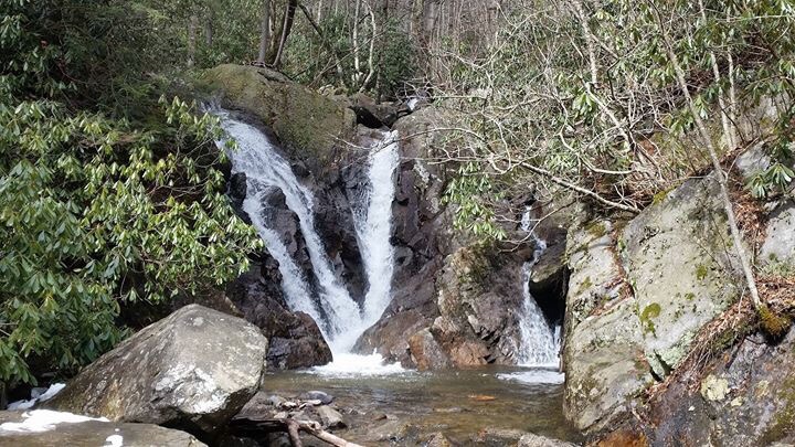 We walk to the trailhead to have lunch and there are a lot of rescue vehicles. Nosy me goes over to ask what’s going on. Without saying to much one man tells me someone needed help getting down off the mountain. I say I hope they are ok and go back to the picnic area and we have lunch. Now the clouds have gone and the sun is out! I contemplate going back up because it’s still early. Instead we decide we will do one more trail and take the cabin creek trail to a waterfall. We have no idea where it’s at and ask a couple walking by. Turns out it’s our first and only thru hiker. He left Georgia a month or so ago and his girl came from Michigan to see him before he got back on the trail. So we wish him well and off he goes.