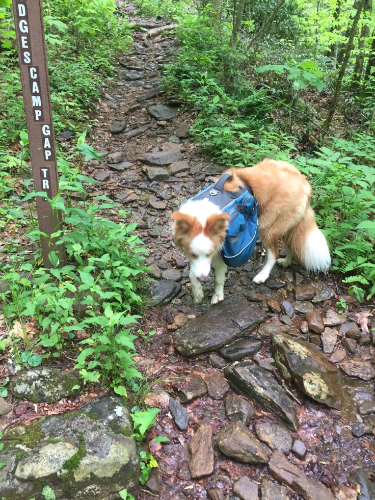 We decided we were going to hike Sunday rain or shine. They picked this trail in the Shining rock wilderness. Sherri and Debbie came to pick me up. Our trail guide was in the backseat and as I got in I felt like I was being crowded. I think our guide liked me? Practically sitting on my lap. I was like “move over!”. Then the kisses started . After the excitement of the new girl wore off and all was quiet. Our trail guide is adorable and was a real good guide!