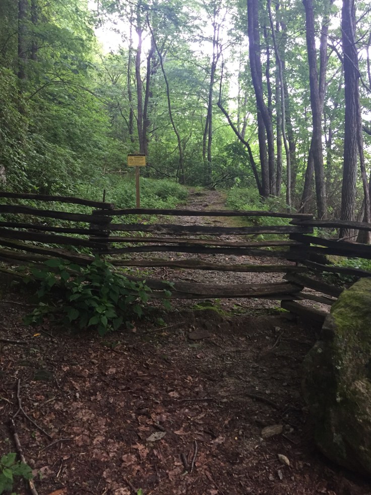We follow the trail till we see a sign that says visitors center and observation deck. We head that way and come to another parking area. We figure we went the wrong way and go back and find the observation deck. Idk what it observed but all I see are trees. It’s right next to the power lines. We check the map again and cannot figure where to go. We follow the trail till it comes to the visitors center. This falls is 1.5 miles from here. I call the center and she says go to the bearwallow parking area and it’s 1/2 mile from there. So, back we go. We complained about the state park map the whole way! The trails have Blazes but the park map has zero blazes and the only trail they name is rainbow falls! We get to the parking area and decide to use the restroom. From the restroom we can see the sign for the falls across the road. The map does NOT show crossing the road!