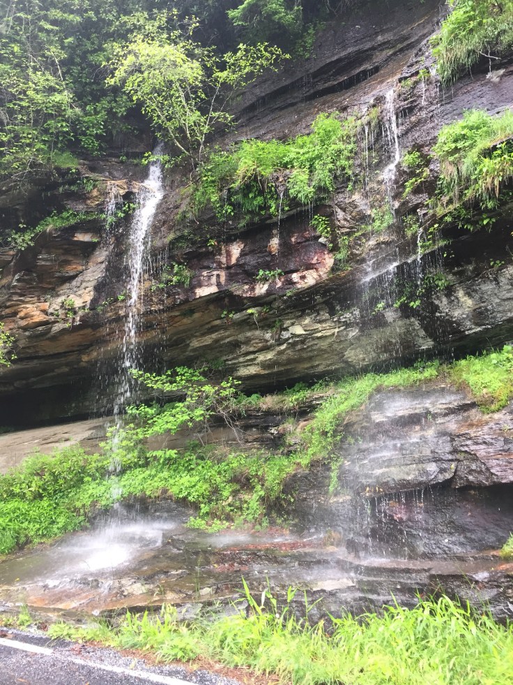 Finally back at the car it’s almost 4pm. There is one more waterfall she wants to find. It’s Raven Rock Falls. It’s not in her waterfall book. She found it on a facebook group called waterfall junkies. It is on private property. It’s on 281 near Brevard. The only description is Powerpole 61. On the way there is a small waterfall on the side of the road.