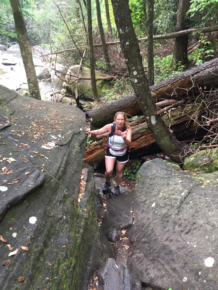 Lisa, of course, jumped. This is her making fun of me as I walked between them after I slid down the rock. 🙄