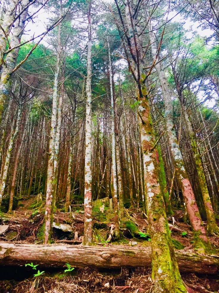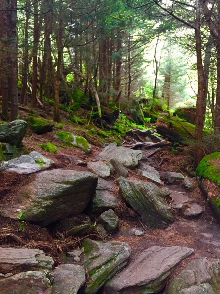 The trail was rocky and full of roots right from the start. It first went up through dark forests of moss-covered trees and rocks. It was by far the best smelling trail I have ever been on. This trail just smelled like Christmas. The whole trail had the smell of christmas trees. There were plenty of them lined up along the trail. This trail was visually as beautiful.