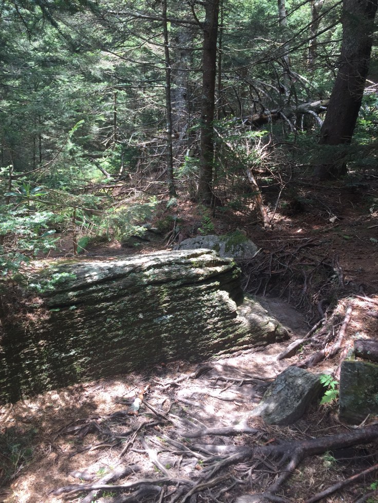 Time to head back down the trail. Since 2/3 of this trail was going up well that means 2/3 of the trail is now going down. Down is not necessarily easier since it kills my knees and toes. But here we go. Now they are many more people going up and down this trail. Maybe 10 tops but that’s 10 more than we seen on the way up. We get to the Camp Alice trail and take it instead to make a longer loop. We head down, down, down, more rocks and roots. There is really nothing flat about this trail. I can hear water flowing for the first time. I just love water on the trail so I’m excited.