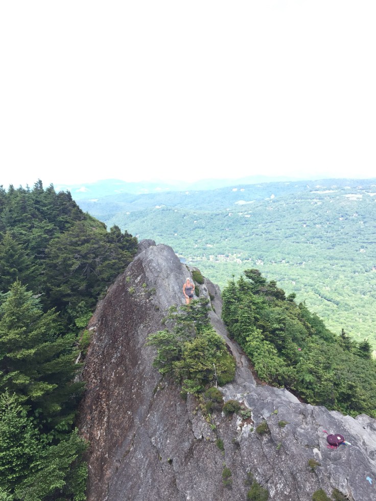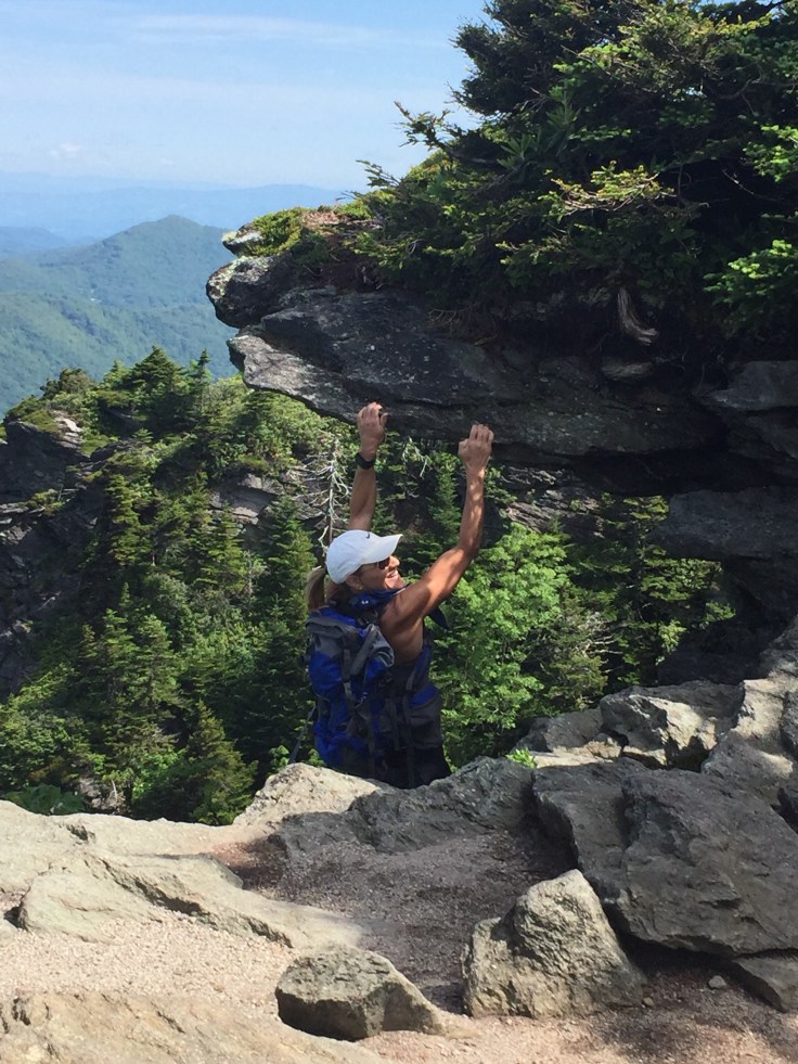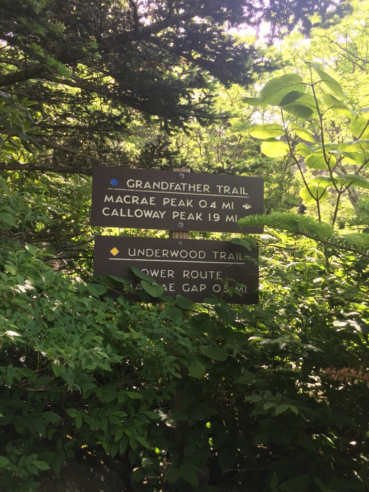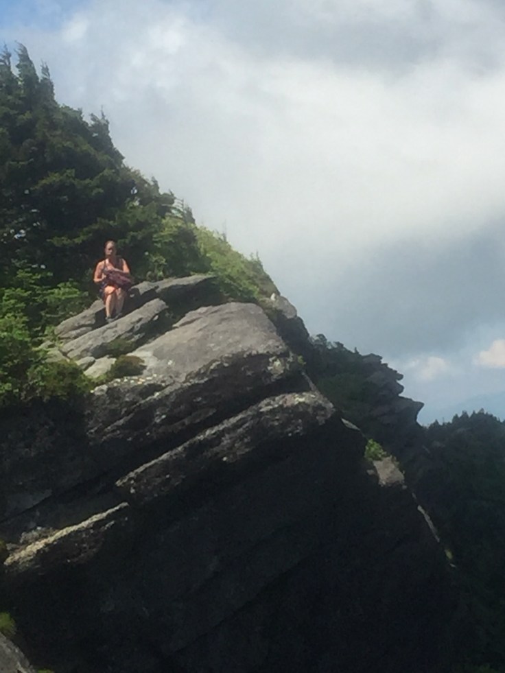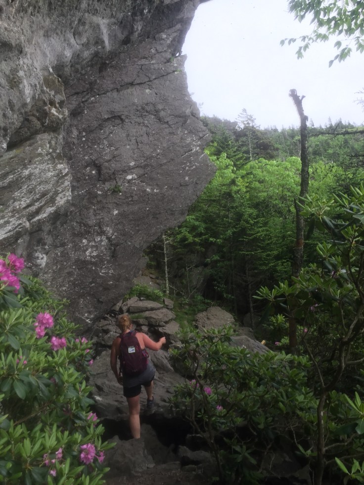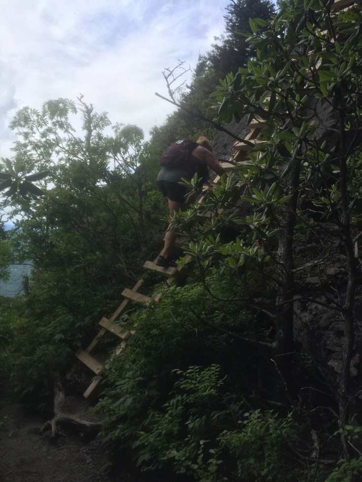 It’s just a short way to Calloway Peak, a couple ladder Climbs and we are there. It looks like a storm cloud is coming and when we get to the top it faces the Linn Cove area but it’s covered in clouds. I eat my second sandwich and I am ready to go!