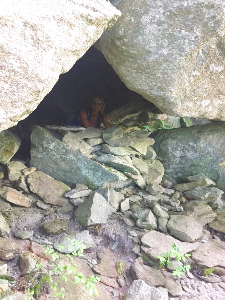 Right from the start this trail shows you what it’s made of. Up we go on a rocky trail. It twists and turns as it goes up and we reach a big rock that we can climb under. We are all excited and go up there to get some pics then it’s my turn.