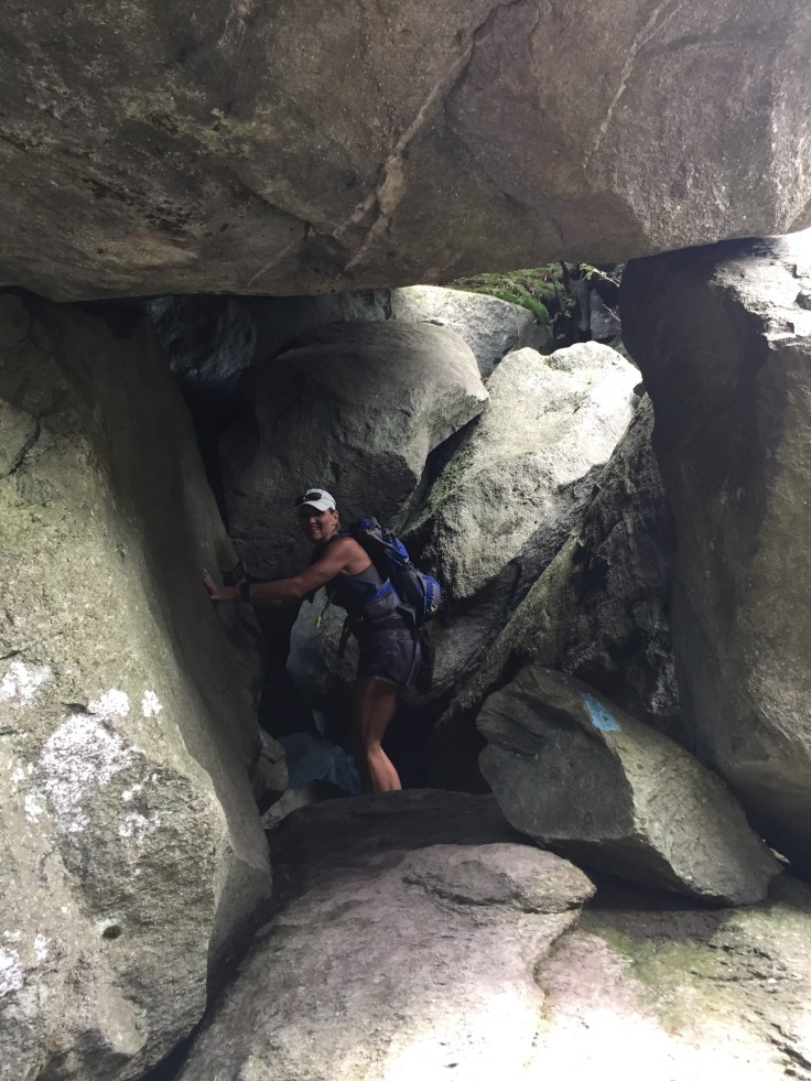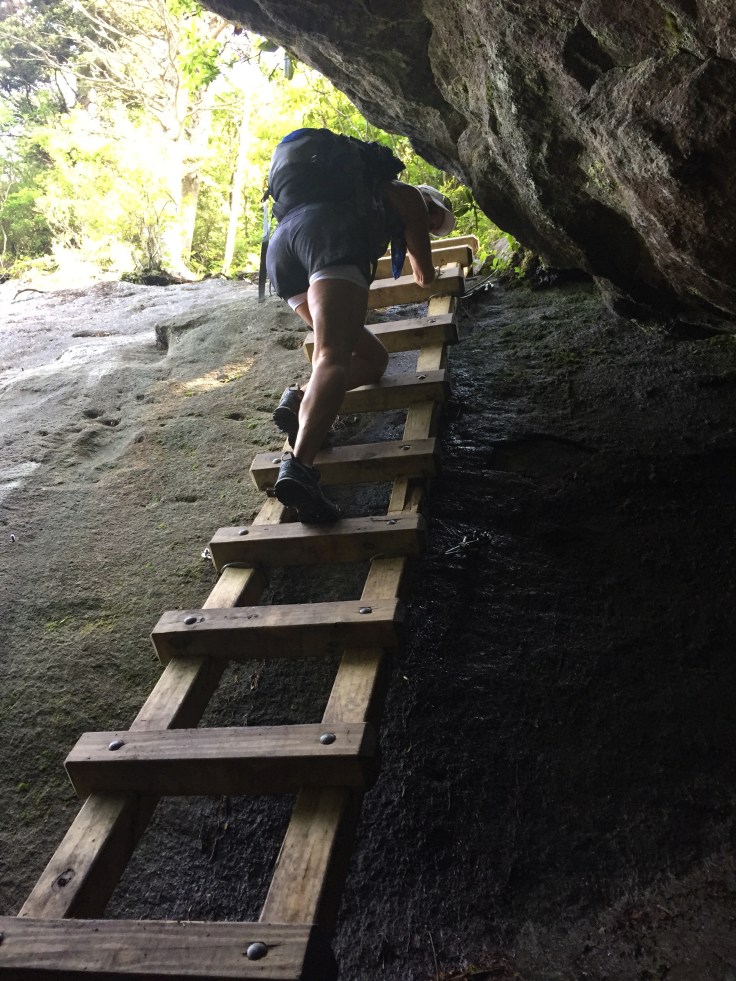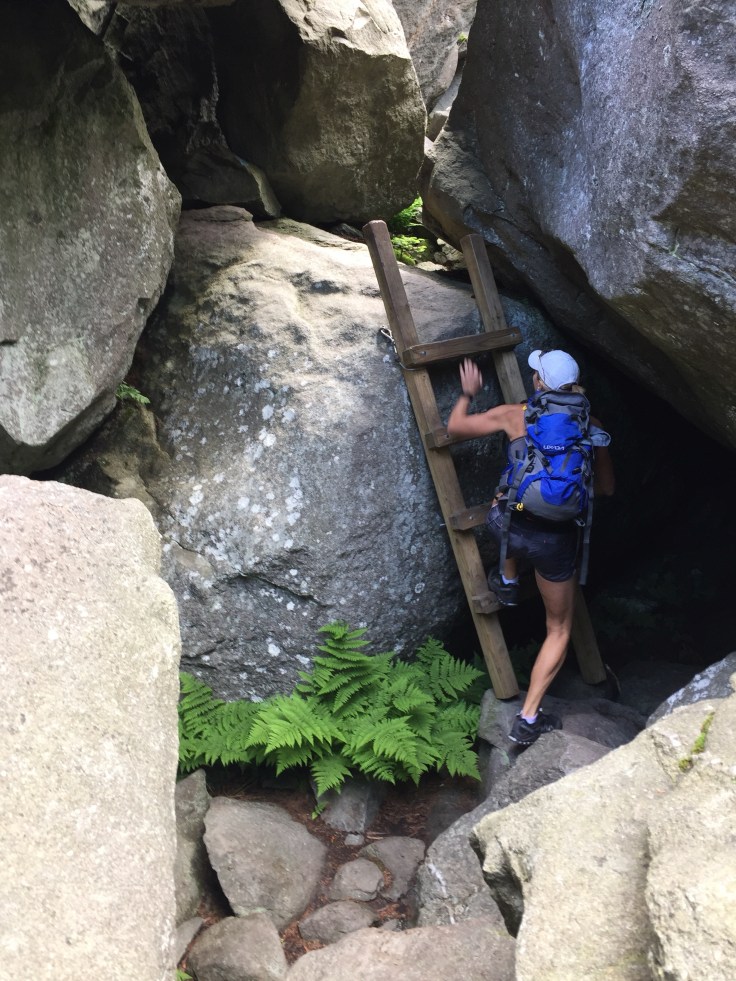 The first ladder climb comes after the trail takes you through a kind of cave area. Under big boulders. It’s pretty cool.