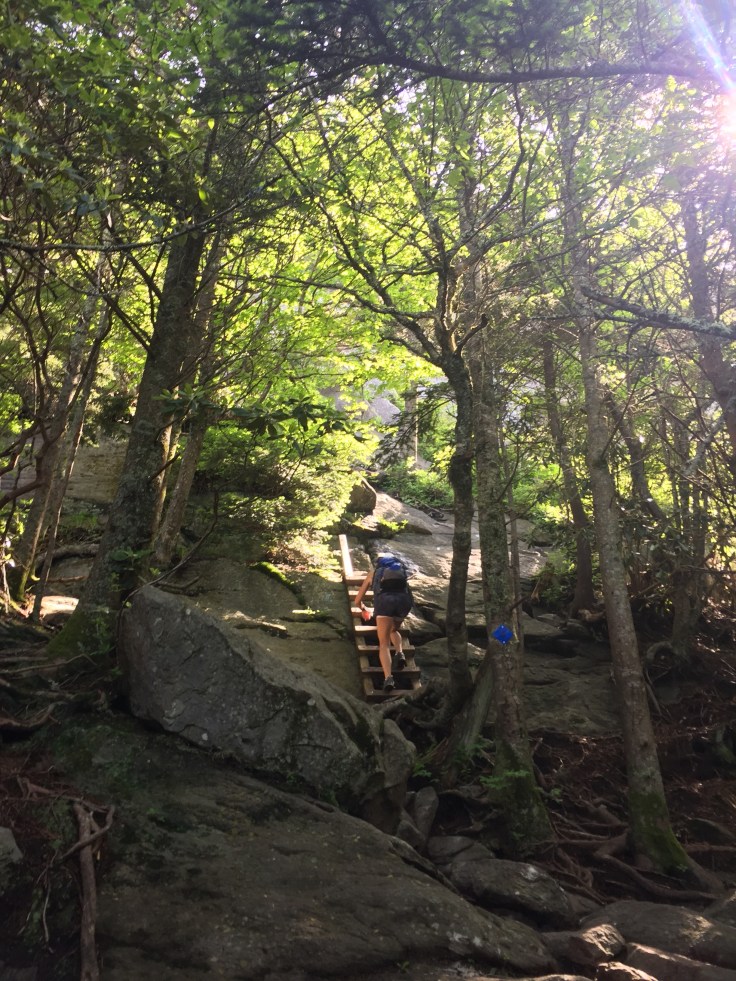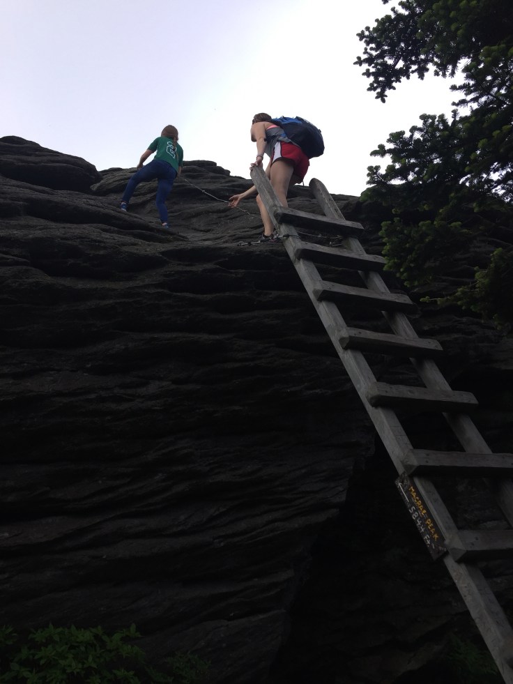 There is still more ladders but the forest is getting thicker. It’s still rocky but luckily we are pretty much under a canopy of cover. I’m sweating up a storm at this point. I’m thinking I don’t want to see Calloway peak but someone pier pressures me into it! 😜