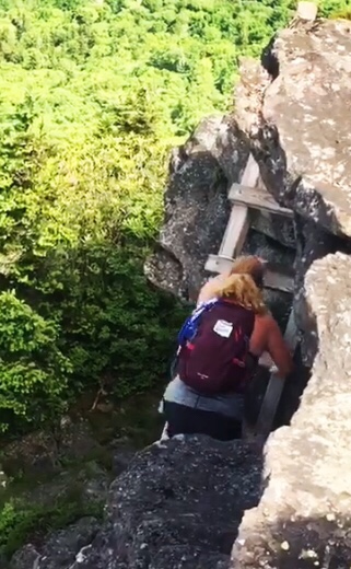 From here we are right in front of McRaes Peak! I’m not gonna lie it is so intimidating. Lisa is dying to climb up there. There are people right above us taking pics. To get up there there is a ladder at the far end that u climb us the climb up the slanted rock face to the peak!
