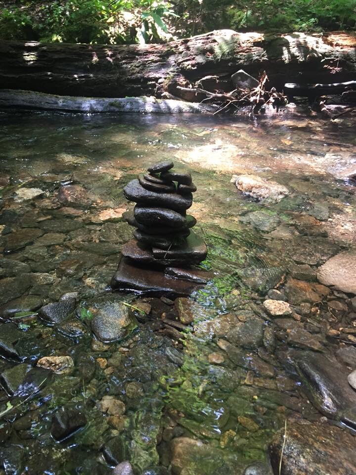 Then I see another guy peering over the next rock. I just know she is going that way and I have a tiny anxiety attack. What if?? Scary! We read that someone was killed at Rainbow falls in NC yesterday so I think my anxiety came from that. She is coming down ! Unbelievable! She said it was extremely steep so she turned around! Yay!