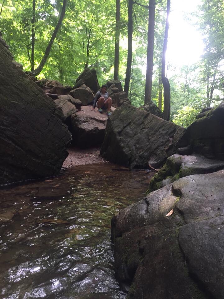 Lisa of course sees a giant hill and up she goes! I follow her up and Ashley and Jolly come along after. This pic is from the climb up to the falls and down to the view.