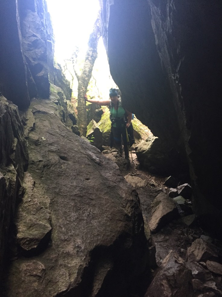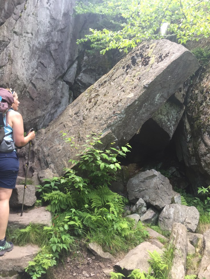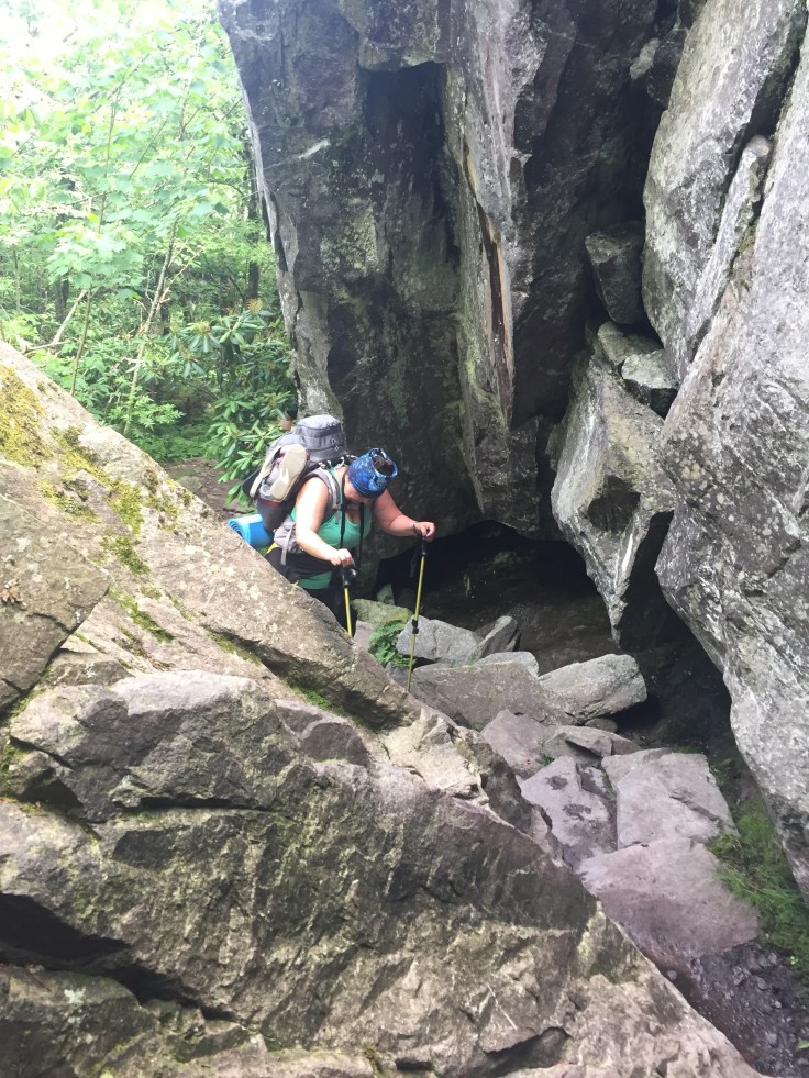 It’s right here where we have trail choices we can go left and follow the AT around Wilburn Ridge, or go right and take either the Spring trail or the Rhododendron trail around the back side of wilburn ridge. We don’t know which way to go so I ask a couple and she points to where we are going and tells us to take the right it’s easier. 😳. She either had no idea and was making it up or she was just a plain class A butthole! It was definitely not the easy way. It was however pretty cool but very rocky. To the left was also the Wilburn ridge trail that went up over the rocks. I would have loved to climb this but not with this backpack for sure!
