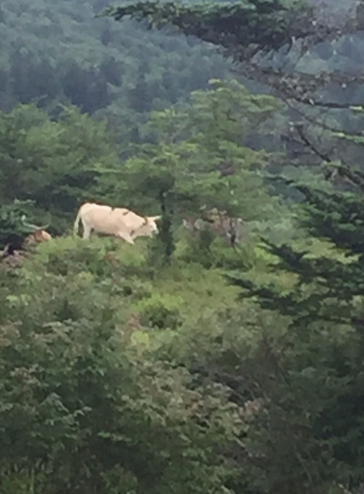 Once we made it around Wilburn Ridge it was about 2 miles to the shelter. While walking along the trail the closer we got the more people we saw setting up camp. I spotted what I thought were cows down in the field. It’s actually longhorn cattle. It seamed like a very odd place for them! Turns out they were brought here to feed on the vegitation and keep the balds bald! Just like the ponies are doing.
