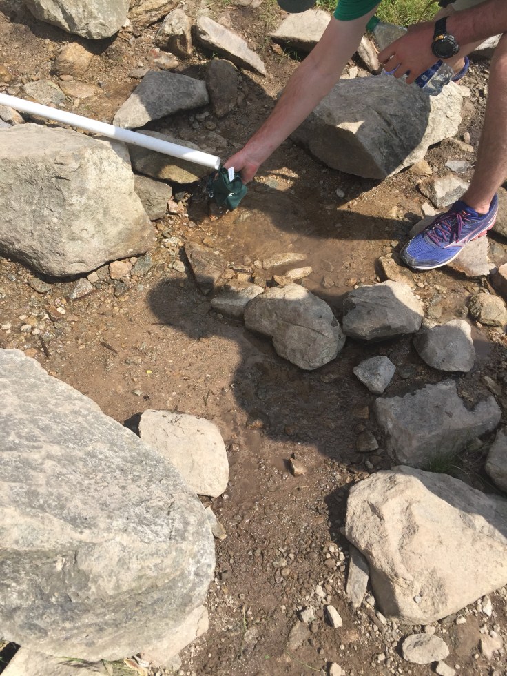 It was past the shelter. When I got back to the shelter the girls were there. The shelter was surrounded with big boulders, no camping here unless in it. There was a water source behind it. It was about 1/4 mile back. A water source is a pvc pipe in the ground with spring ? Water running out. We have our water purification gear. This water was crystal clear in the water bottle though.