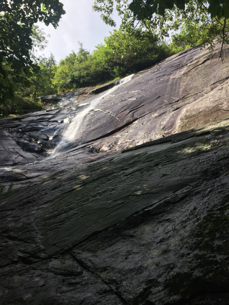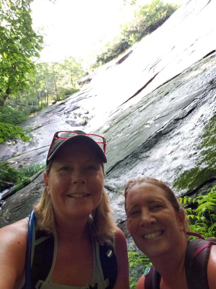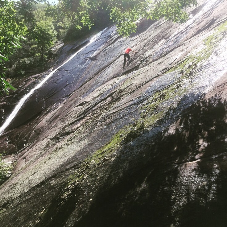 About 1 mile in is Lower Bearwallow Falls. After all this rain it still did not have much water going over it. It was about 100 ft tall. Sherri read that people do ice climbing here. On the way back we did see people rock climbing.
