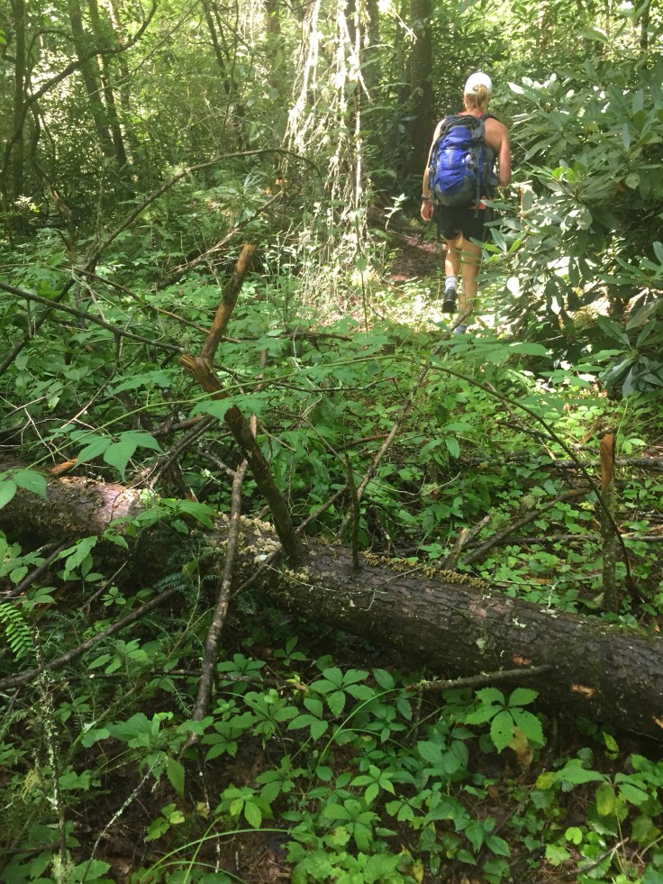 Almost all 5 miles of this hike we can hear rushing water or waterfalls on the Toxaway river. There is no way to get near it or even see water!