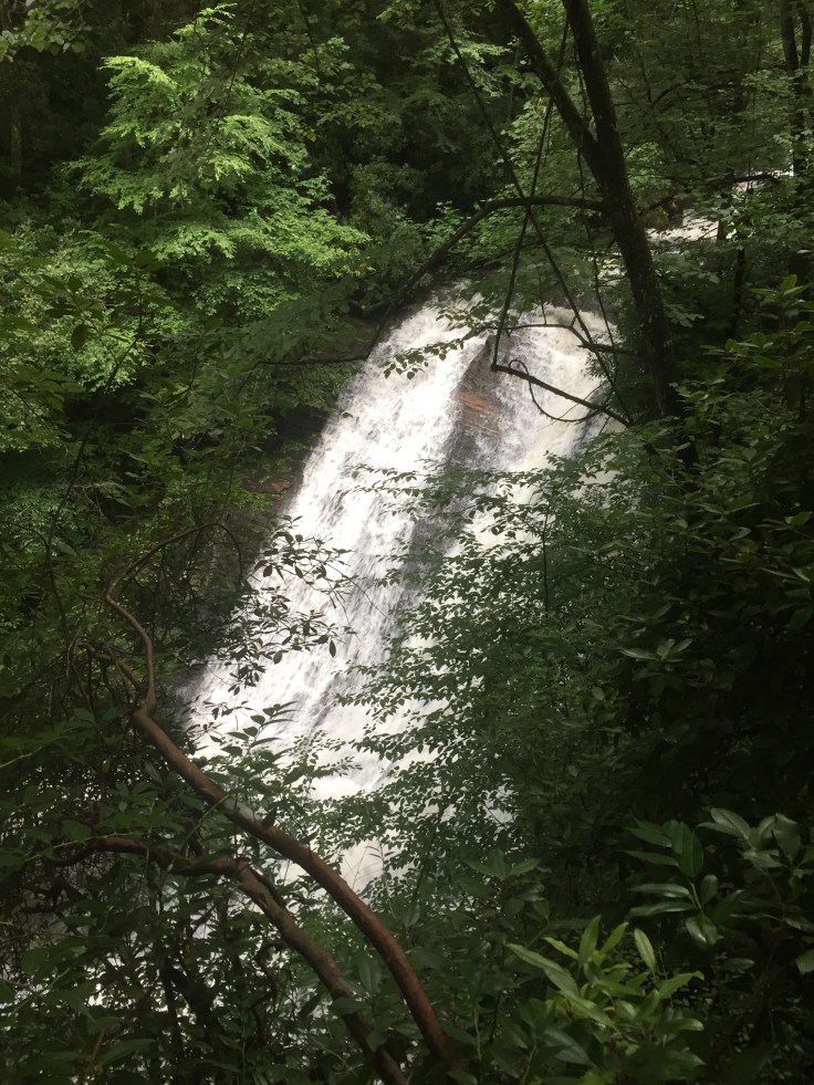 It’s about 5:30 now and we head up past looking glass falls to see 2 more waterfalls. Directions have us turn a dirt road and go a couple miles. It passed so close to Looking Glass rock. It was huge.