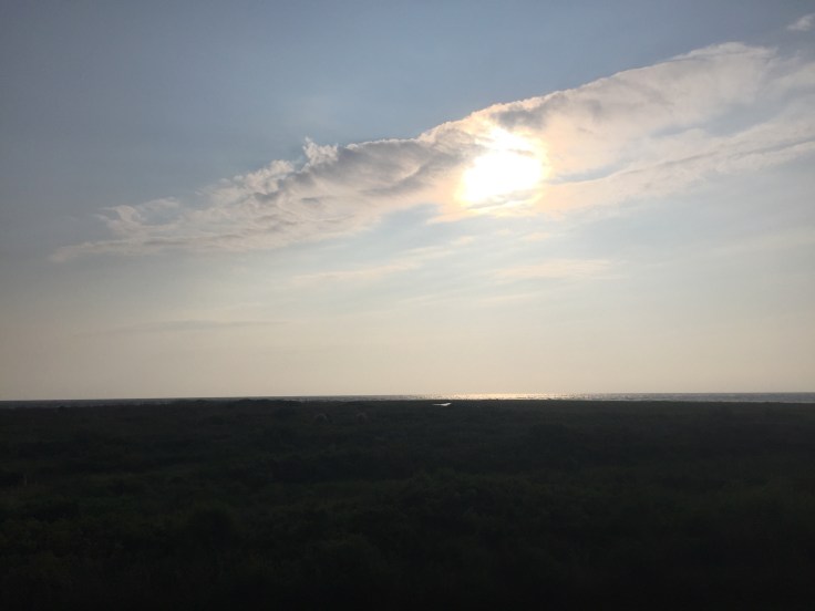 The rest of the evening we just sat on the screen porch listening to music and chilling. After dark we headed to the beach to see if we could find some turtles. Rule for the beach at night is no white lights. We found a flashlight with a red balloon over it. We found a couple of marked turtle nest but no turtles.