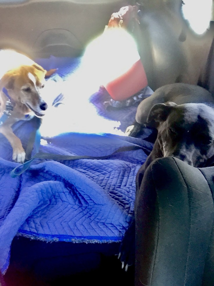 We got back in the car and those dogs were tired now! They actually laid down in the back. I checked the mileage and it was 7 miles for the day. We were a little tired too!