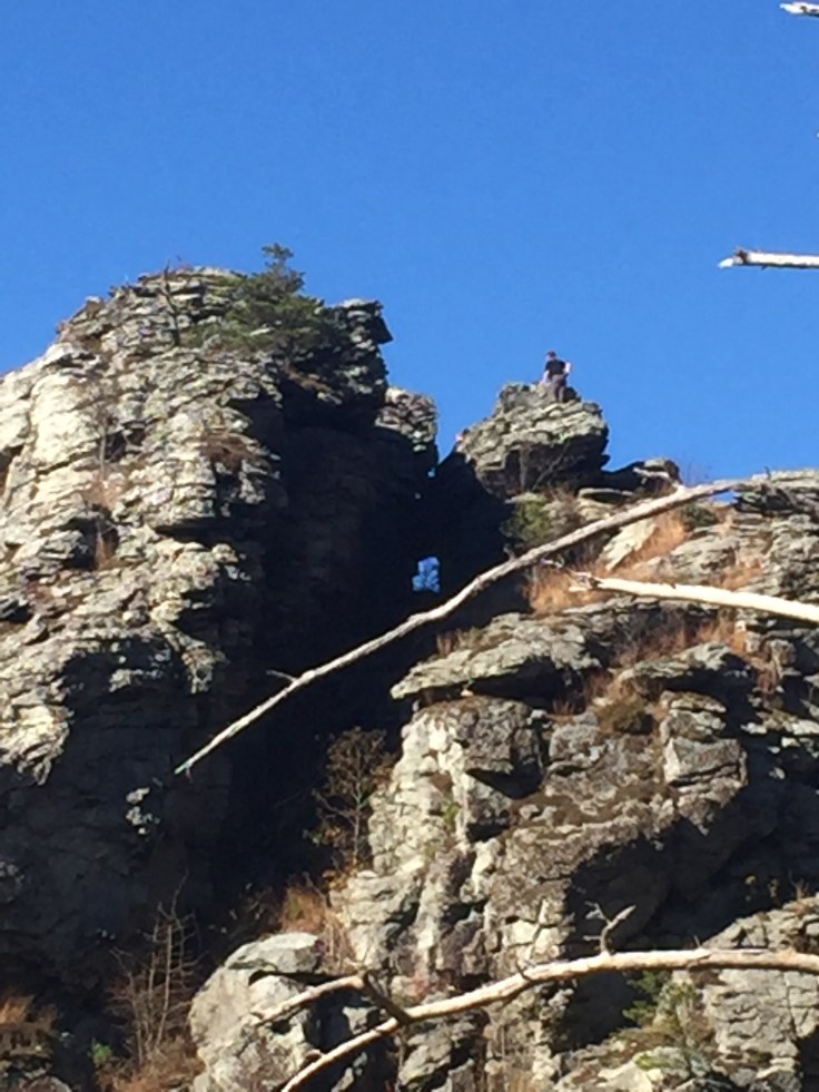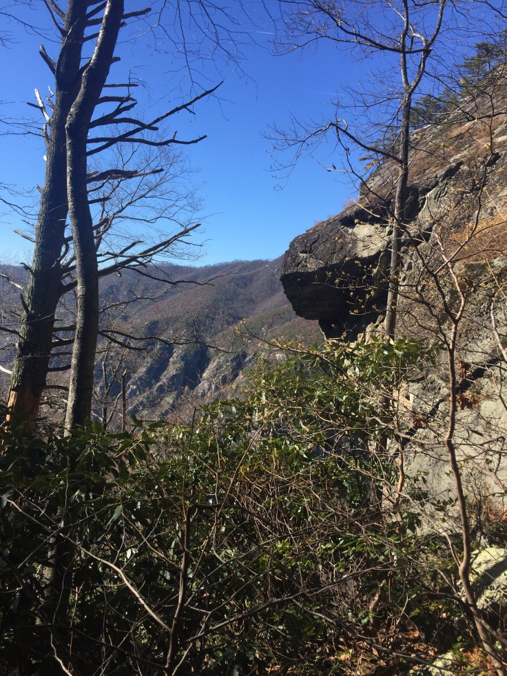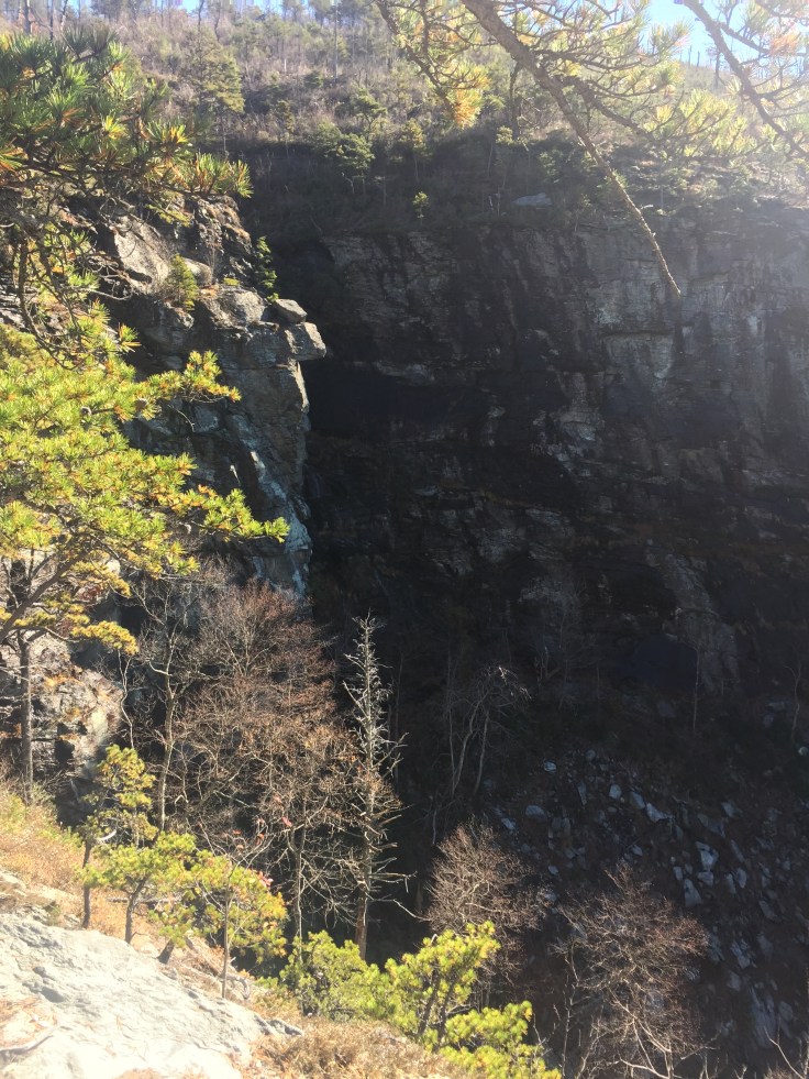 We met at Table Rock at 10. We went toward Shortoff Mountain. About 2 miles down the trail we took an unmarked path to the right which I believe is the Ampitheater trail. After a bit the trail splits and you can go left to the mummy or straight to where we are going. We stopped on top of some cliffs to meet up with everyone.