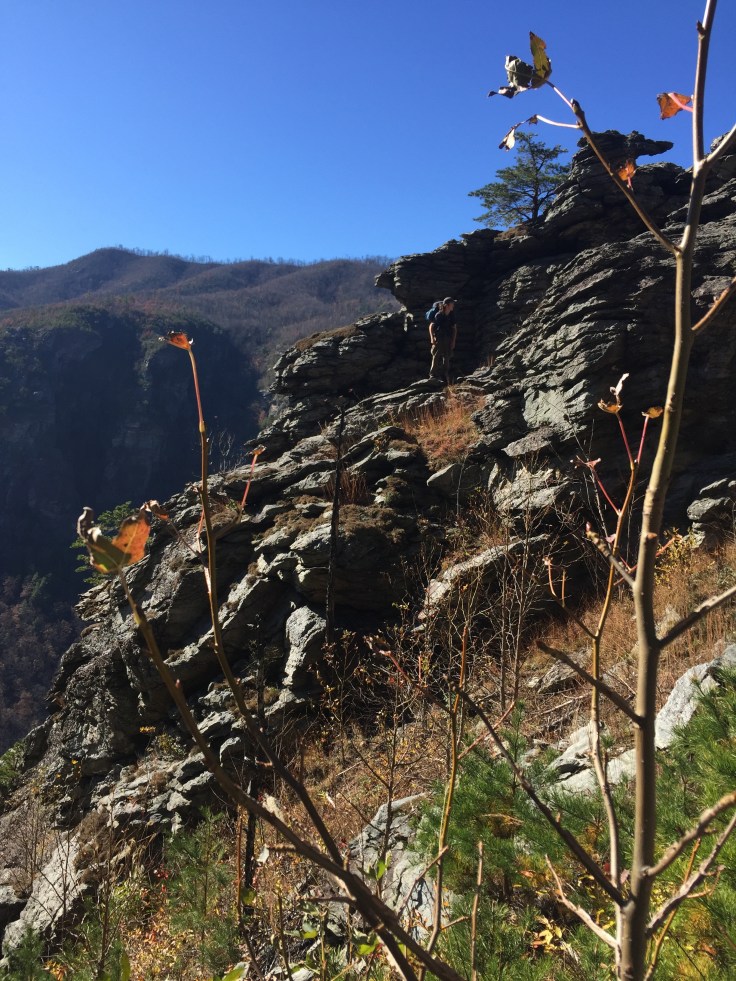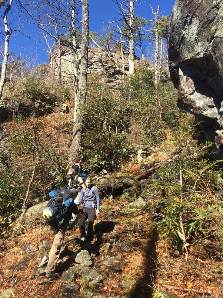 I love hiking, this was mountain climbing! The Linville Gorge is a beautiful rugged area that I am falling in love with. We are heading deep into the Gorge to a place so remote they tell me only a select number of people ever go to. I was calling us the Elite team!