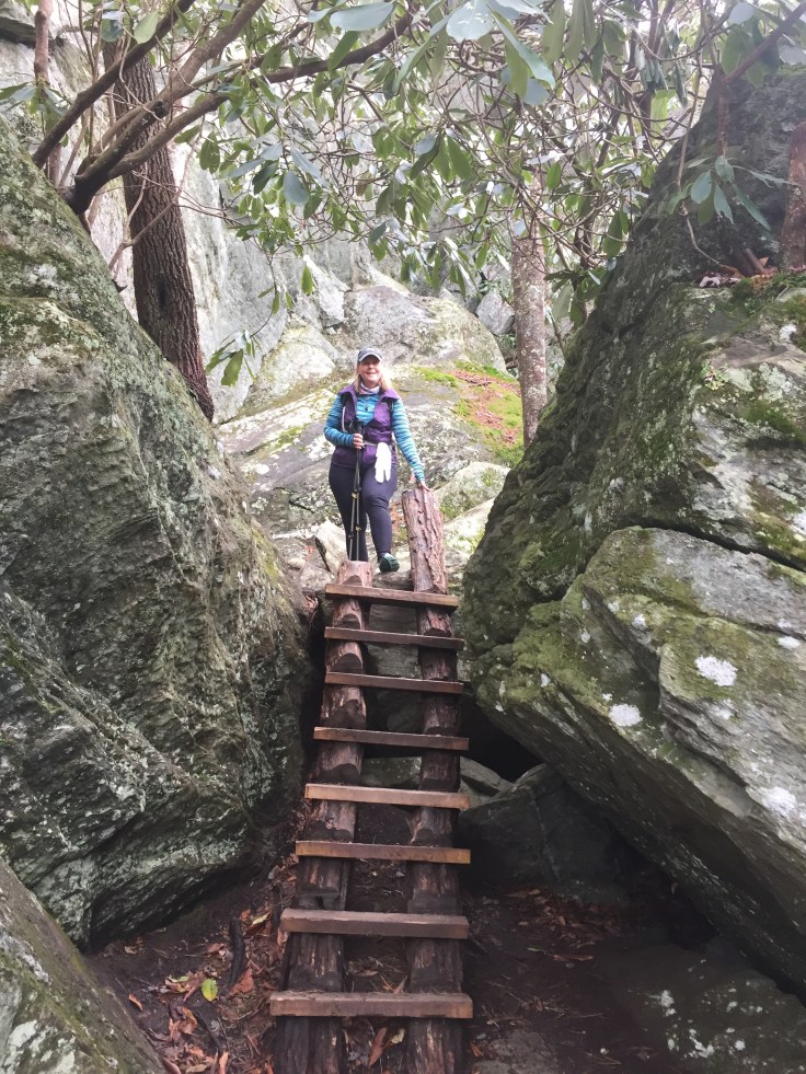 After this the trail went up some steps, went high above the river then through a large rock area.