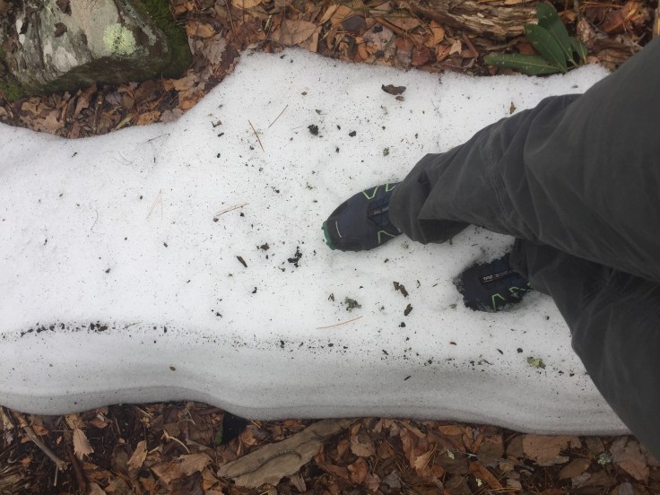 Some of the drifts were about 4 feet deep along the wall! As we walked up we had to walk on some of the frozen drifts and at times fell in past our knees. Otherwise the snow was gone from this area.