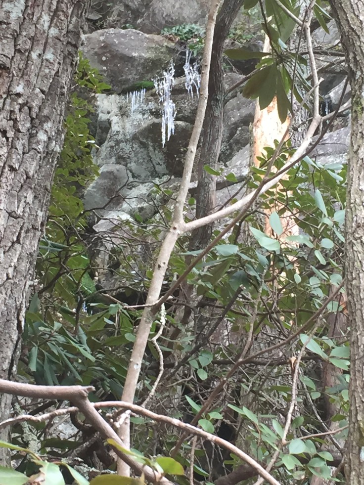 The areas where water ran down the rocks on this side were frozen into icicles. It was really beautiful!