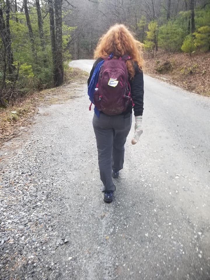 Fashion doesn’t count when your cold ! 𤣠We hung out a little bit more then took our walk back down Hawksbill Trail. At the end of the trail we arrived in Table Rock Rd. From here we had to walk the road back to Spence Ridge. I was still wearing my socks which Brandi thought was hilarious! They were dangling off my arms and it wasn’t even cold anymore.