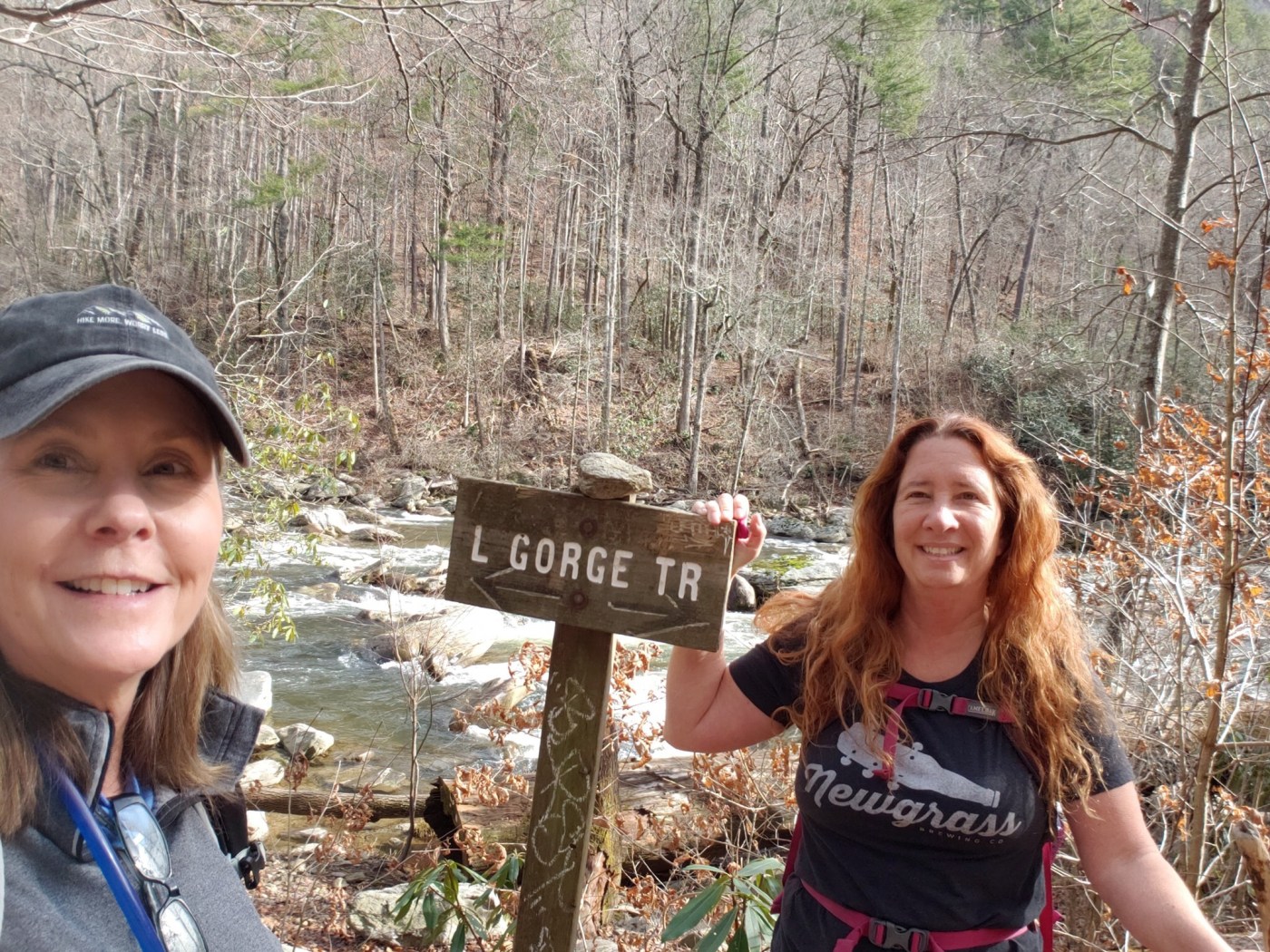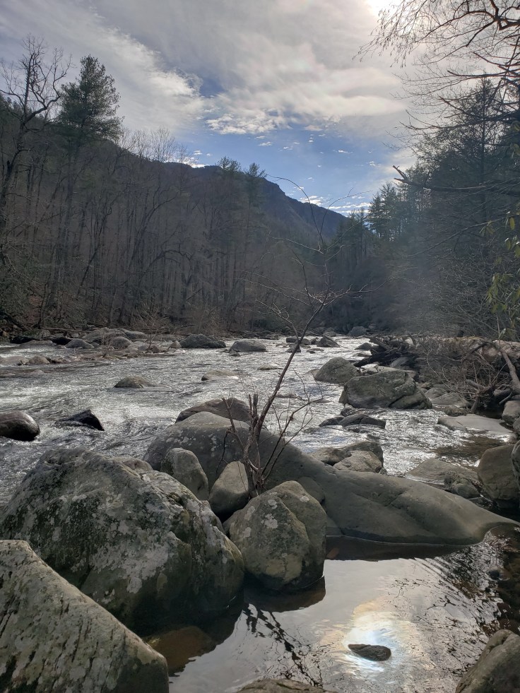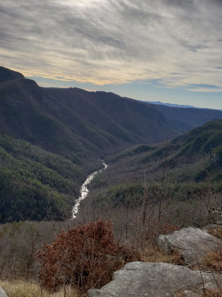 Sherri picked me up from the B&B at 10 am and we headed into Linville Falls. We decided to go to Conley Cove Trail. Neither of us had done this trail before. We were excited to be on a new trail and to get to the river. On the way we passed Babel Tower trail and I told her to stop because I saw Nick and some friends. They were getting reading to hike it. We said hi and then we’re on our way. But first we went to Wiseman’s View. This spot would be very touristy because it’s so easy to walk to but not today we had it to ourselves.