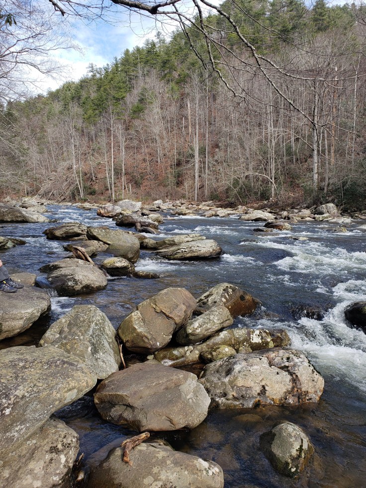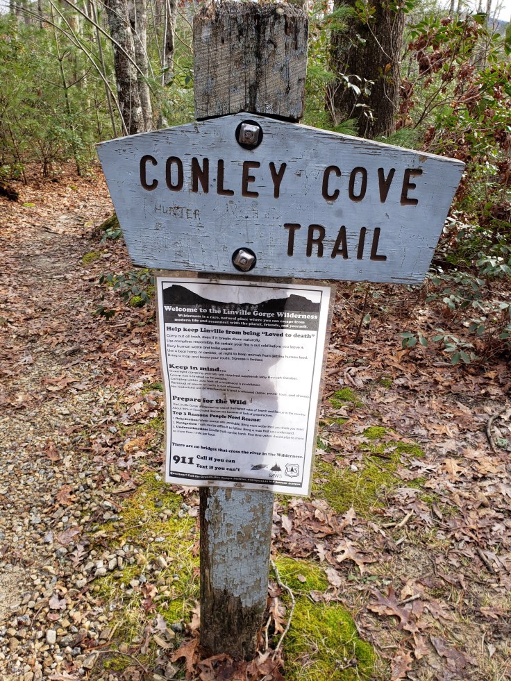 We were getting close to the river it was getting louder. Then the sign the Linville Gorge trail sign! I’ve never seen it before.