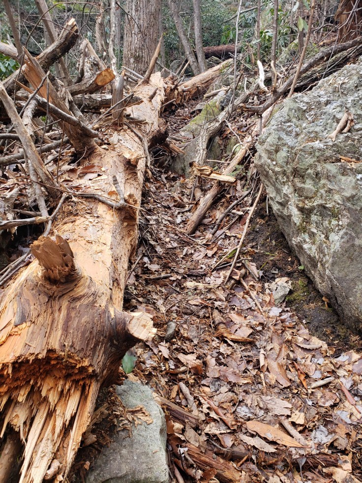 There was one huge dead elm that must have been 50 feet tall. It fell along the trail like a barrier. It was real cool.