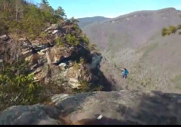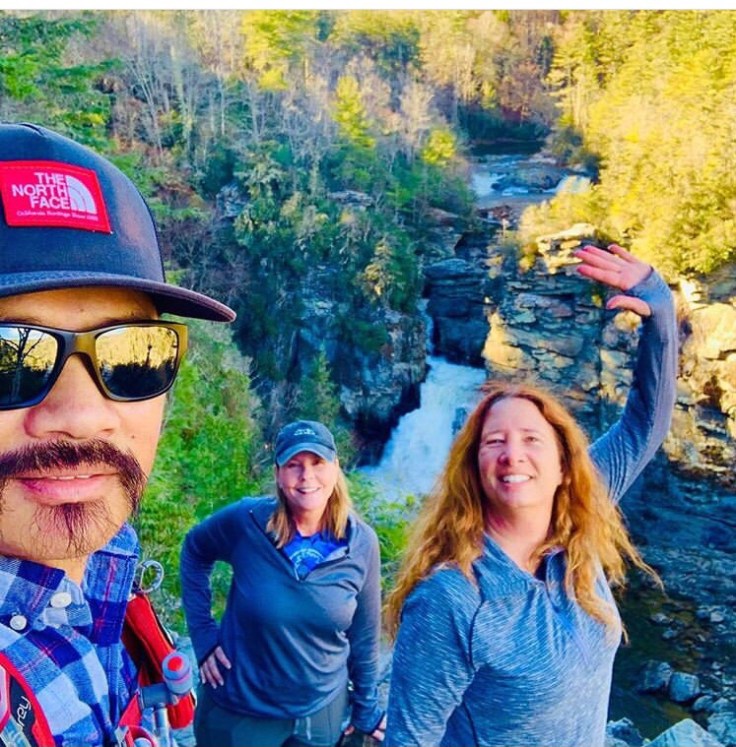 We got to the car and headed back down toward the falls. Mike texted and said he was at Wiseman’s view. I told him we were at Babel trail and he was going to go out the other way after he watched the sunset. We went to Linville Falls and took the trail to the falls. We didn’t go to the first overlook – too many people. We went down to the next one and ran into Cypress. We follow him on Instagram and met him at Hanging Rock. See small world.