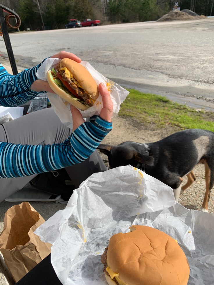 Where the trail crosses the road is Wilson’s Store. We went in and ordered 2 cheeseburgers got some chips and a drink. We sat down on the stoop of an abandoned store and had lunch.
