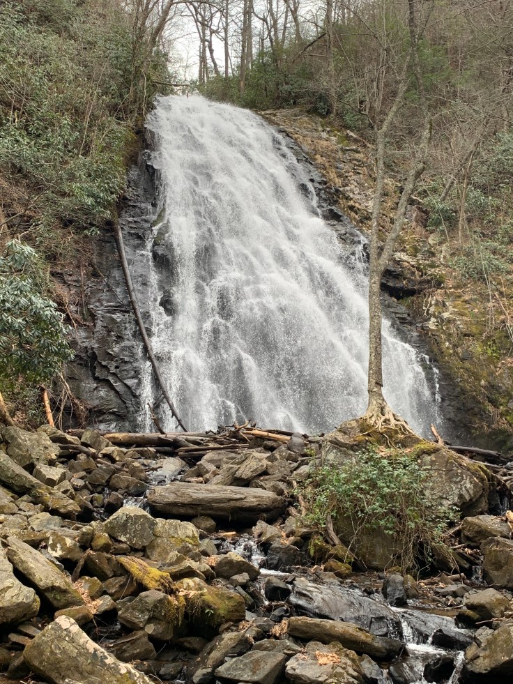 The next morning we headed to Valle Crusis to do another waterfall called Crab Orchard Falls. Valle Crusis is on the other side of Boone. It has great views of Grandfather Mountain, farm land and more mountains. This waterfall is on private property belonging to the Valle Crusis conference center. It is a nice wide trail that goes up steeply for about a half mile then goes down to the base of the falls. It’s a multi tiered falls. It’s very pretty.