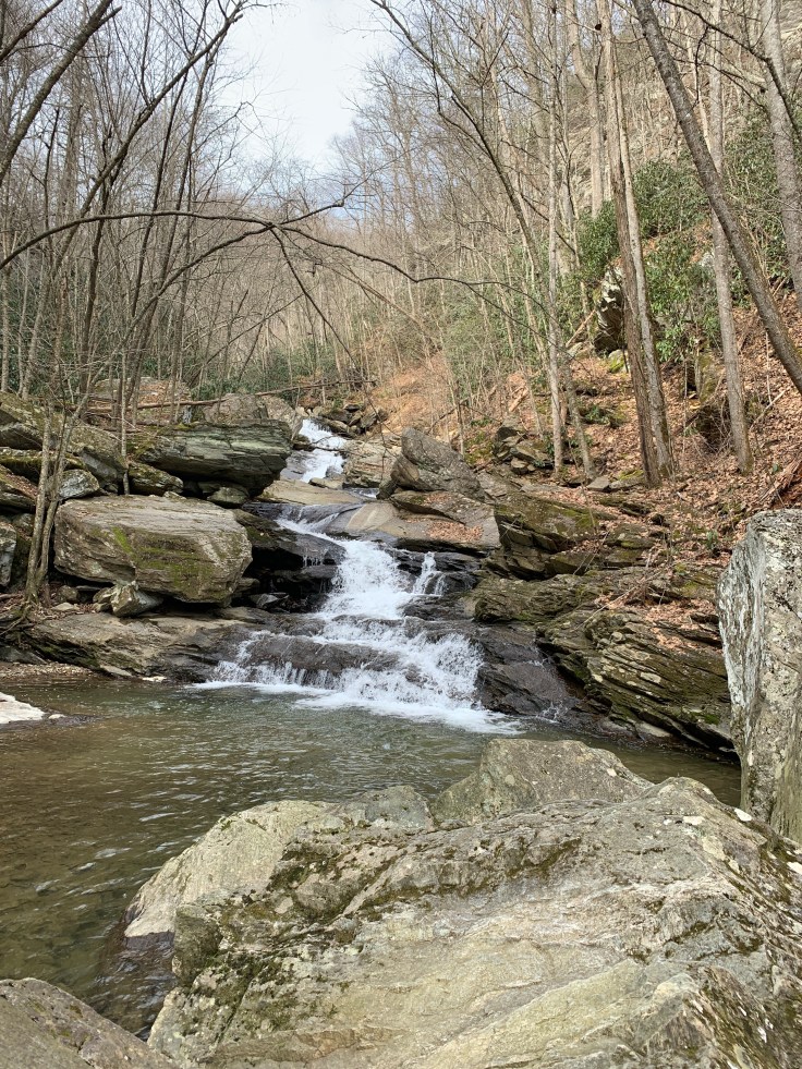 There is absolutely no signal here. I want to do Steele’s Creek falls but can’t find it. We get closer to Morganton before we get signal and find out the road it’s on is closed so we would have to walk it. We decide against it and head to North Harper creek falls instead.