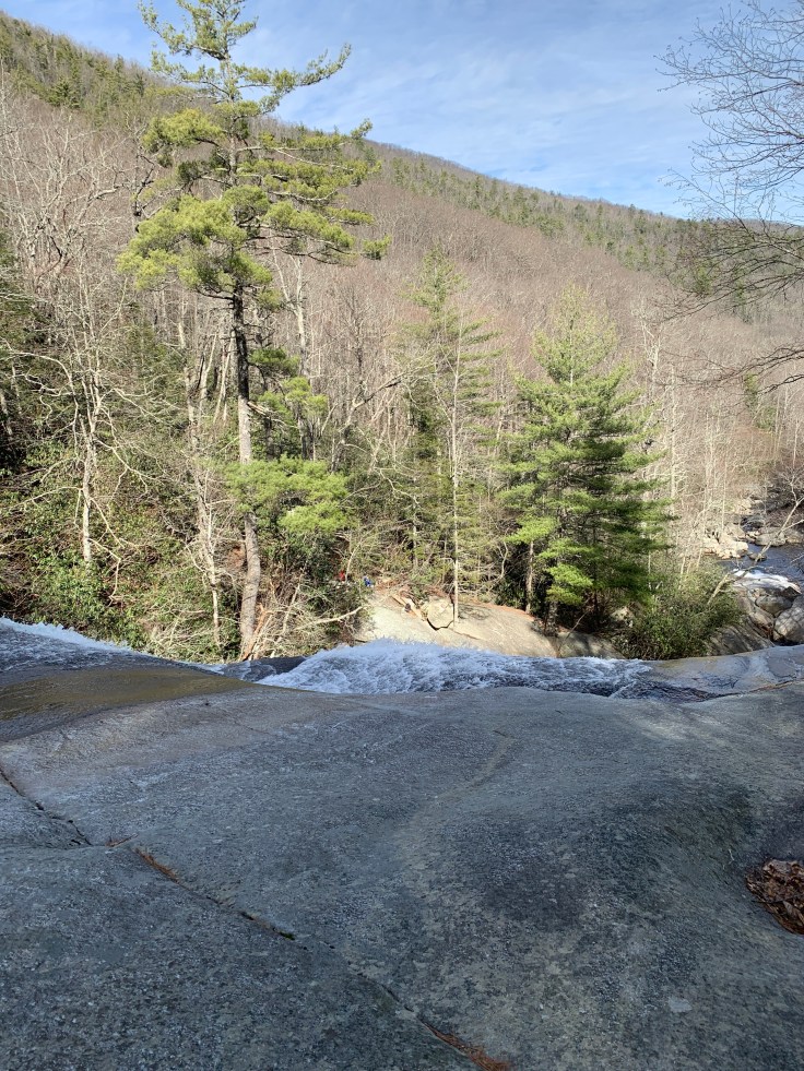 This was the view from the bottom?! The trail picks up at the other side and heads up river. It reaches the real falls. It’s a beauty! I could tell we were on the edge of Wilson’s creek because this one resembled the smooth rocks that are there.