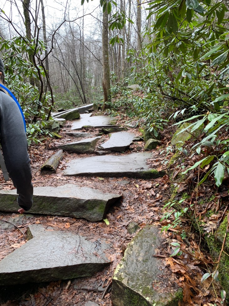 Instead of doing a short loop we took the trail up to the Headquarters trail. Lots more stairs. The trails here are nice and wide. Not rocky and full of roots. That doesn’t mean they are easy because they are steep. I think this area has about 3000 ft elevation but they are not very wide so .. steep!