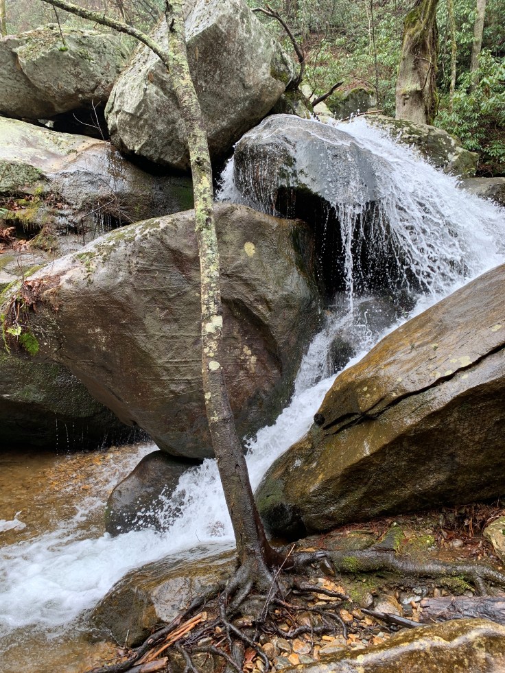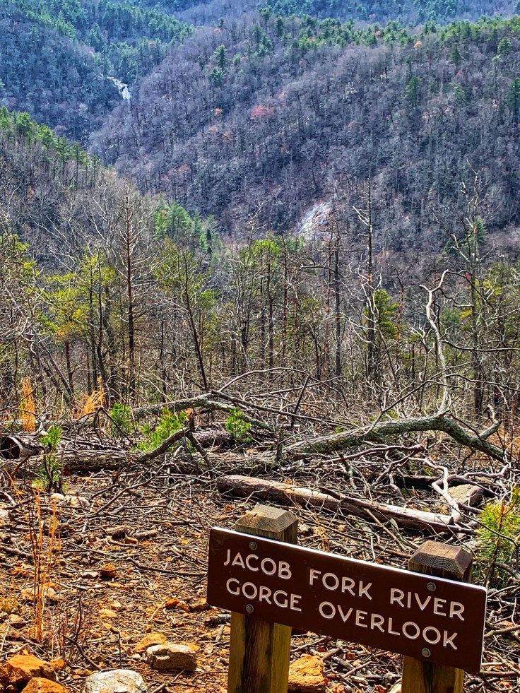 We walked up to the Jacob Fork River Gorge overlook. It had a great view of the falls. Probably from the lack of trees.