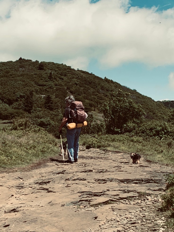 We decided to backpack up to Grassy Ridge Bald and camp. Mike’s first backpack trip. Of course I pack as light as possible and Mike carried tons. I borrowed Sherri’s pack so he would have a real backpack with that anti- gravity back in it.