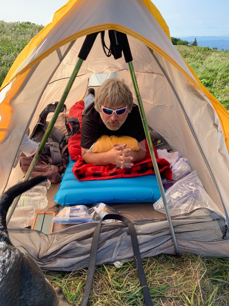It was well after 9pm and it still wasn’t completely dark. We went to bed and in a couple hours the rain came. It lasted about 20 minutes. The winds were kickin pretty good. I could hear Mike snoring. I was jealous. Then at 1:23 bam 💥 The mother of all storms rained down on us! Thunder,lightning, torrential rain, extreme wind. The lightning was a close as 5 miles. The winds probably 70 – 100 mph no joke! It lasted 2 hours! My tent was folding over me! I used my arm to push the back wall up forever. The more it leaned on me the wetter I got because it was touching me! The farther over my tent bent the more rain that got up under the rain fly! Mike and I could barely hear each other. He said he tent was fine and he was dry. A Bivy tent only has poles at either end not in the middle so I can’t believe it didn’t collapse! I couldn’t even think of coming out of my tent. I would be afraid it would blow away and end up at that ugly Sugar Mountain Hotel! I wish I would have recorded the sound of that storm!